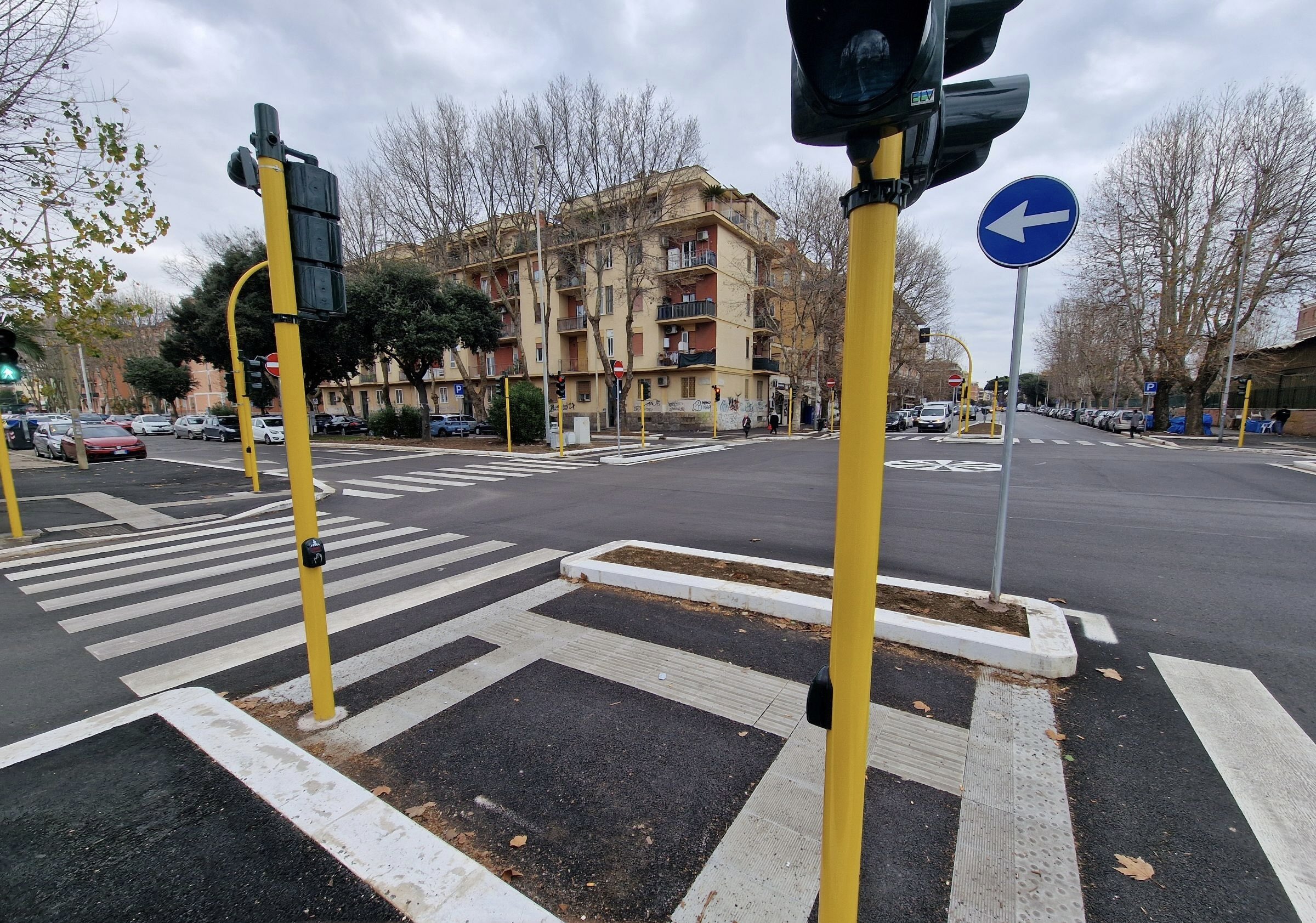 - la riorganizzazione infrastrutturale leggera dell'intersezione, la riprofilatura dei cigli e dei cordoli spartitraffico; la rimodulazione e messa in sicurezza degli spazi, dei percorsi e degli attraversamenti pedonali; l’ottimizzazione degli spazi di sosta e della visibilità;